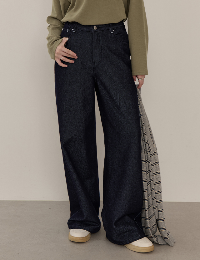Coloring 바텍 논페이드 뒷밴딩 Wide Denim Pants 83766