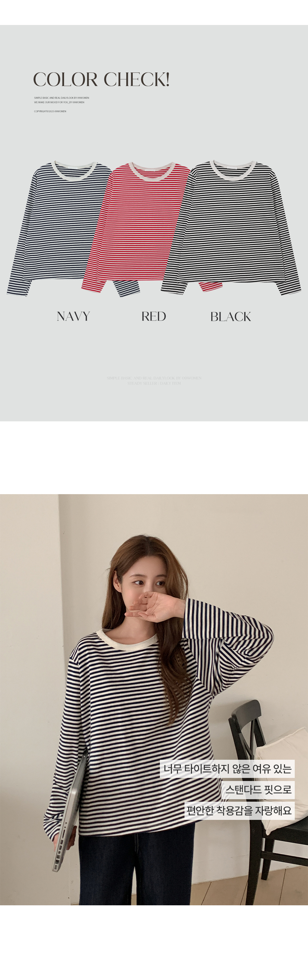 깔끔한 라운드넥 디테일과 데일리한