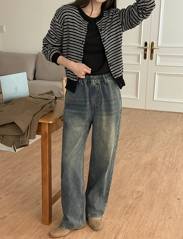 [Special Sale PROJECT][40까지]딱 내가 원한 세미와이드 전체밴딩 Denim Pants 84144
