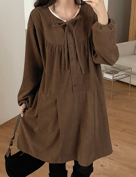 엘로에 Pleats 코듀로이 미디 One Piece 84516