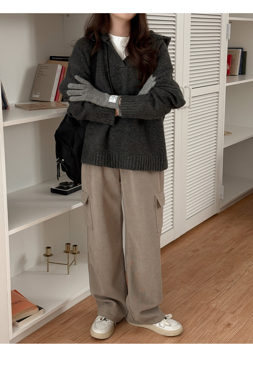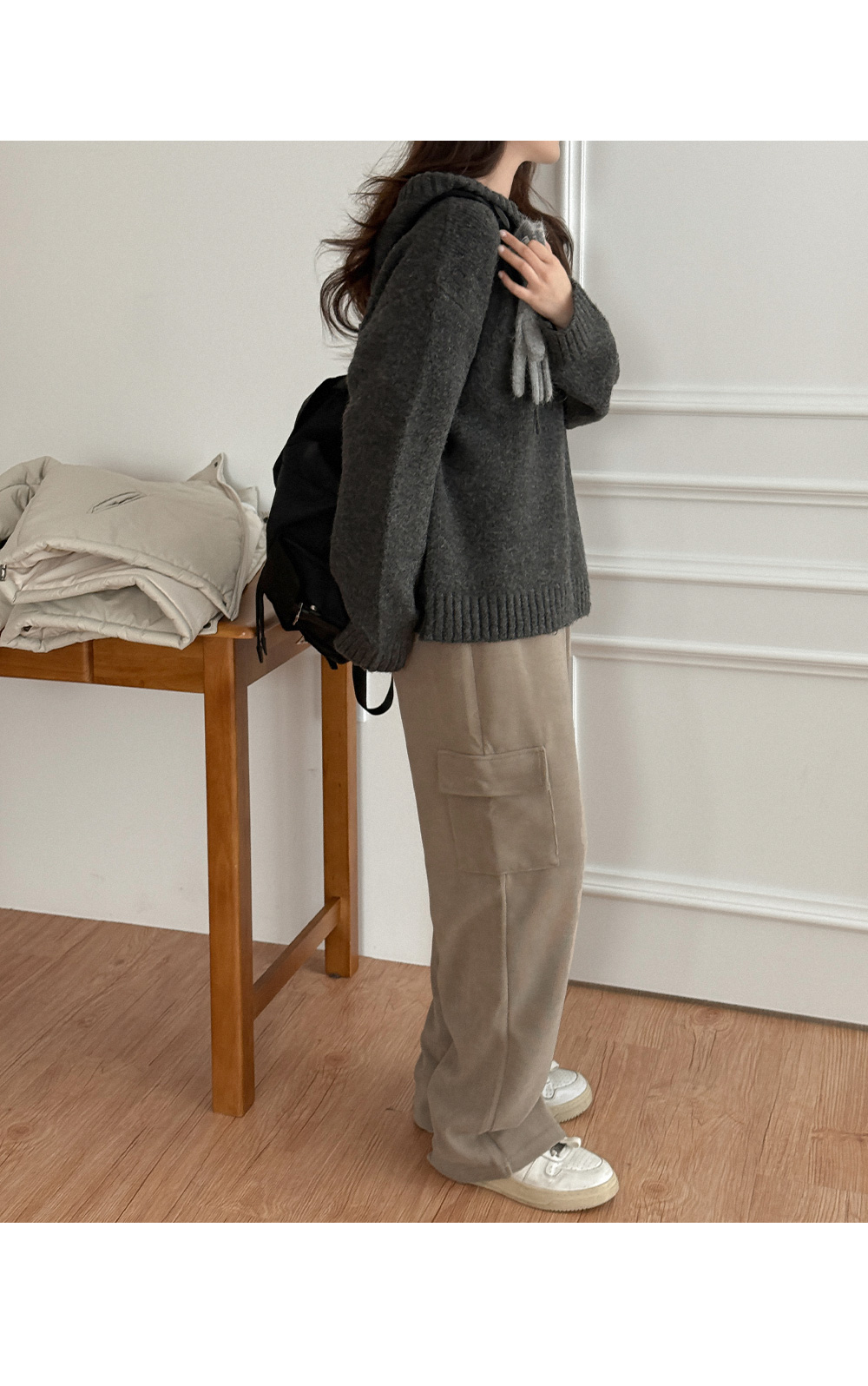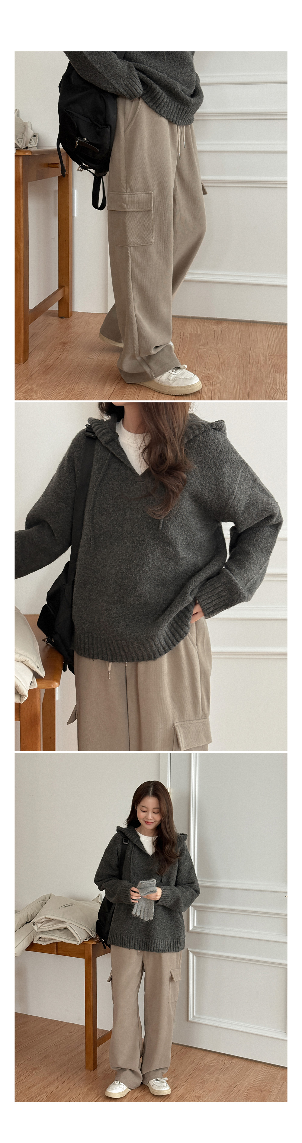 렌티 loose fit V-neck Hood Knit 84848