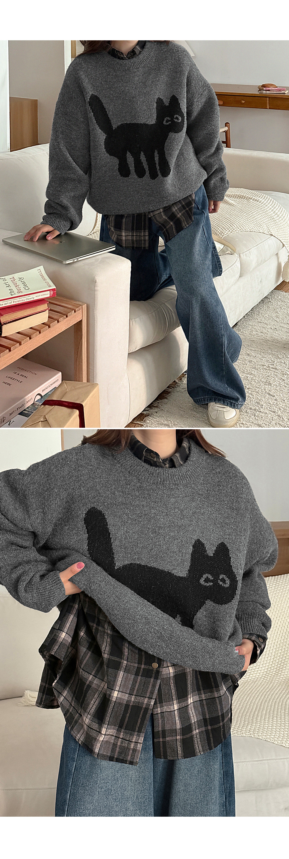 마이캣 자가드 loose fit Knit 85214