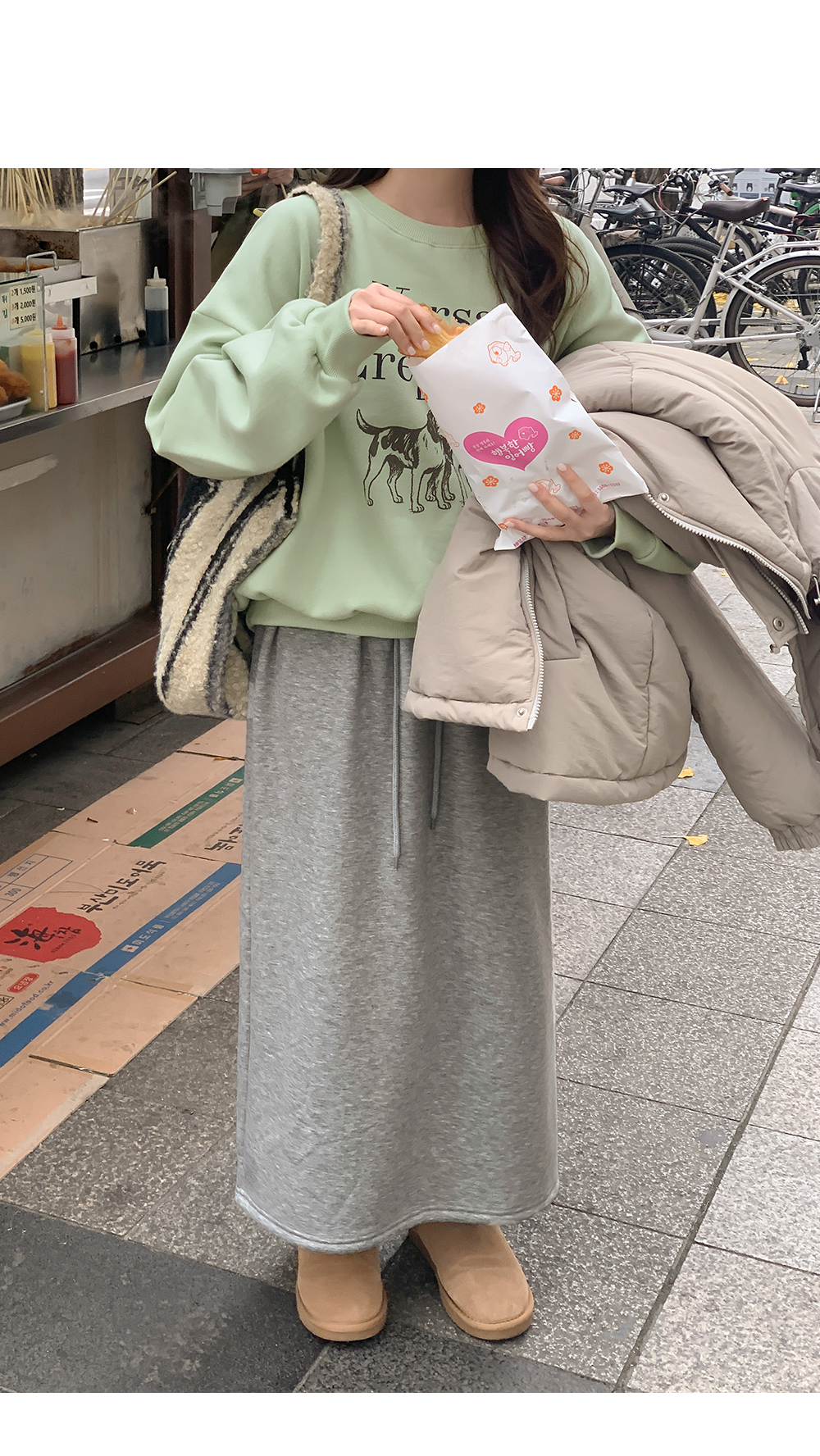 [아방핏]코지퍼피 loose fit napping Printing sweatshirt 85232