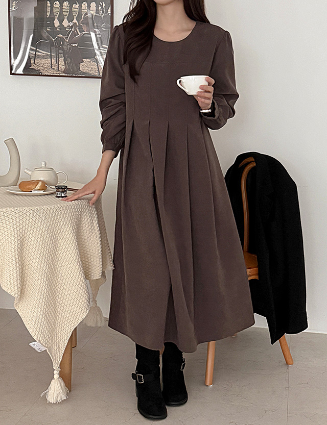 마조리나 Raund neck 턱 Peach long One Piece 85429