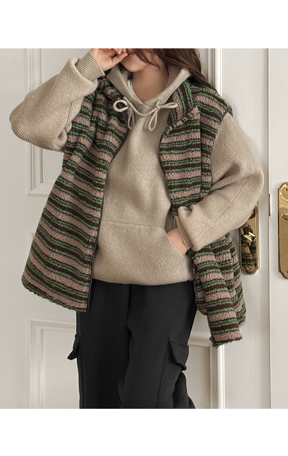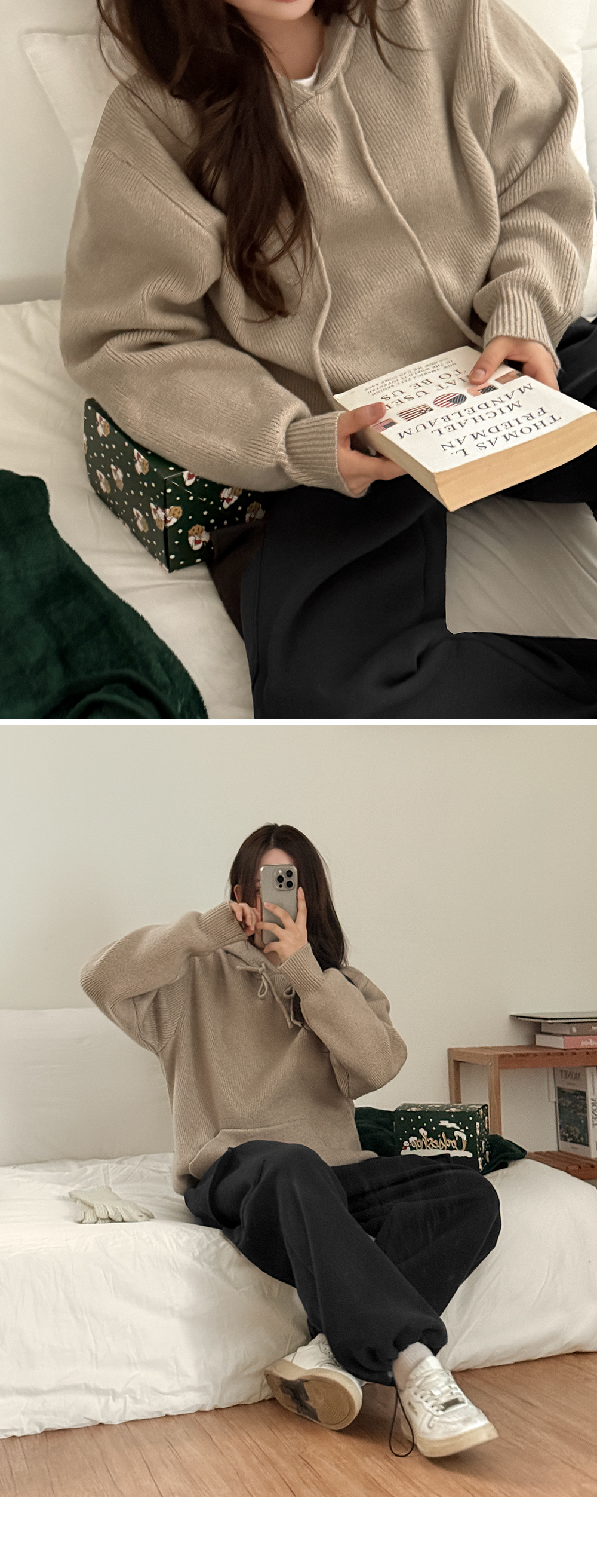 캐주얼한 무드 속 포근함을 담아낸 루즈핏 니트 후드 💗