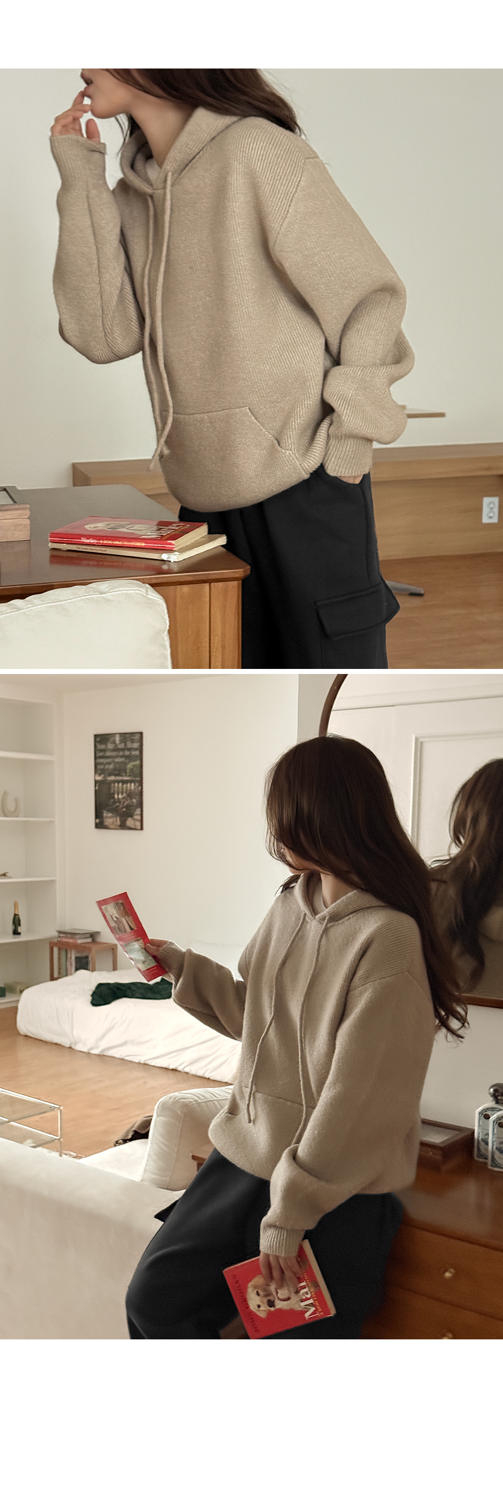 캐주얼한 데일리 코디 완성에 딱인 니트 후드예요