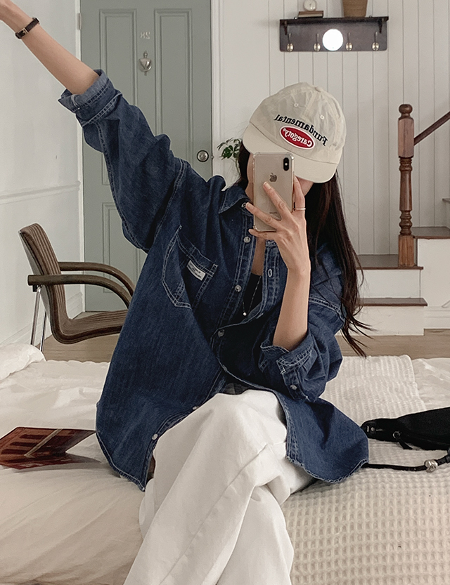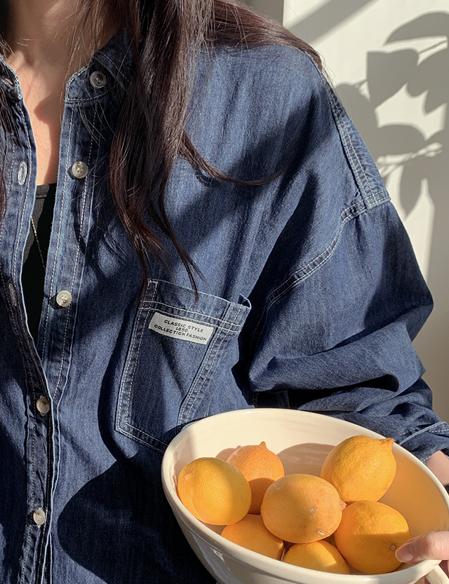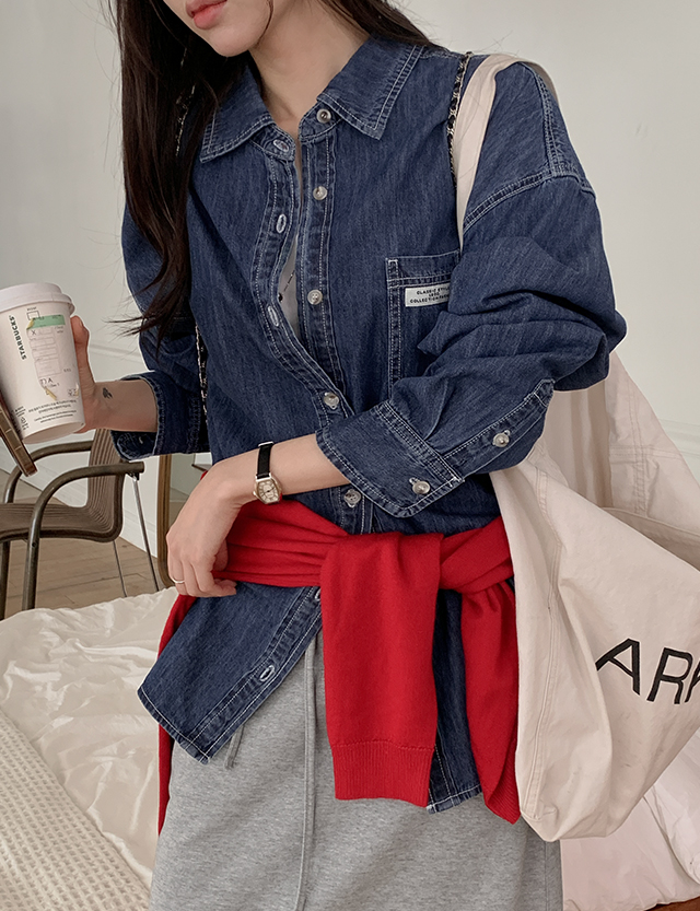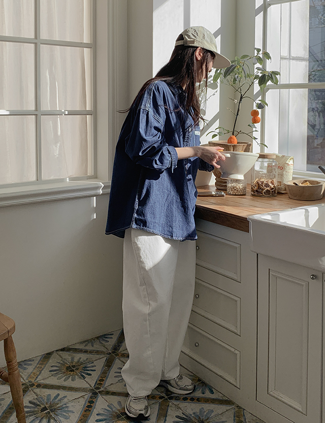 - 캐주얼한 무드의 청량한 루즈핏 데님 셔츠