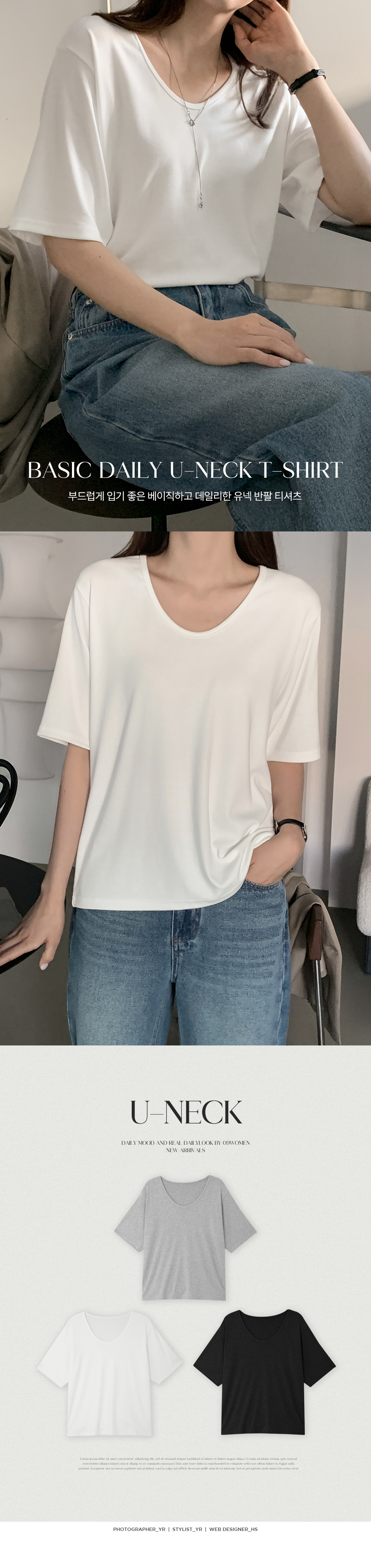- 군더더기없이 심플한 기본 유넥 티셔츠