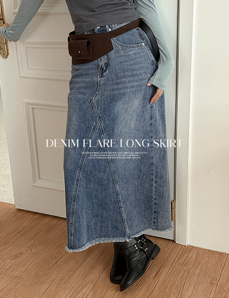• 존헨 뒷밴딩 Denim 프린지 long Skirt 86689