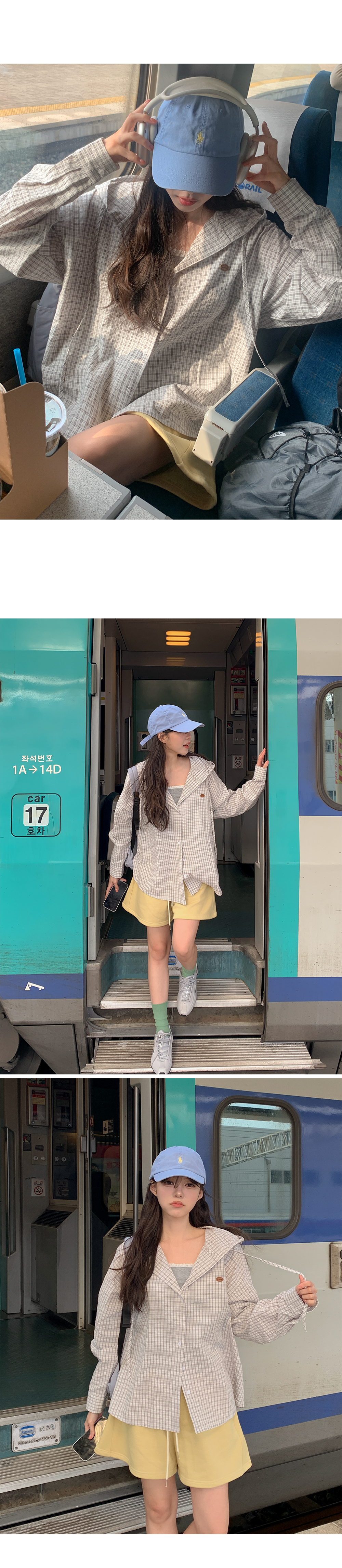 카와비 loose fit Check Hood Shirt 87032
