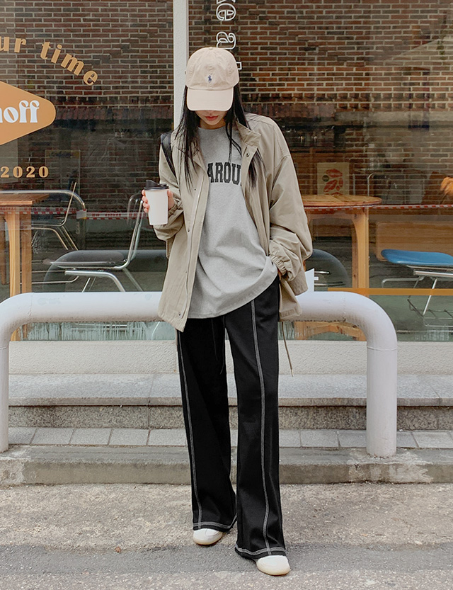 오르인 Stitch Wide Banding Pants 80327