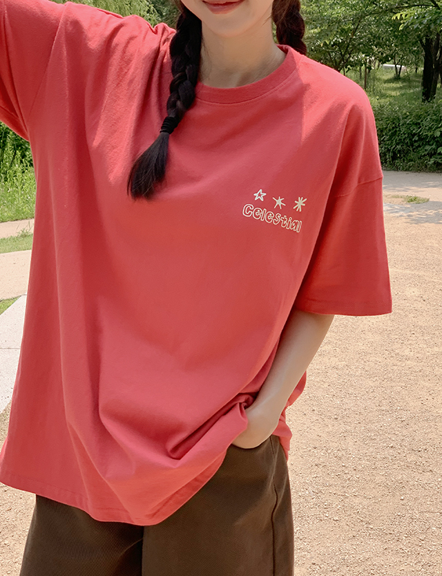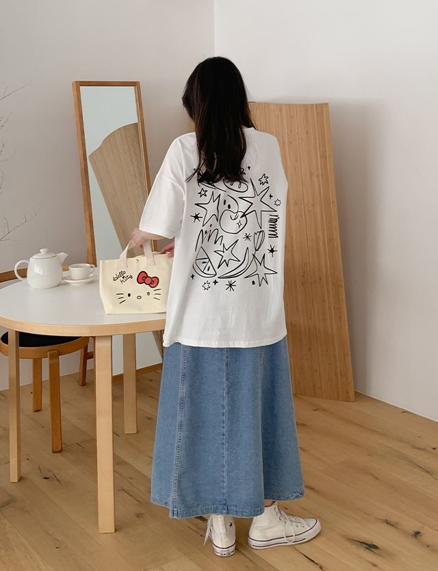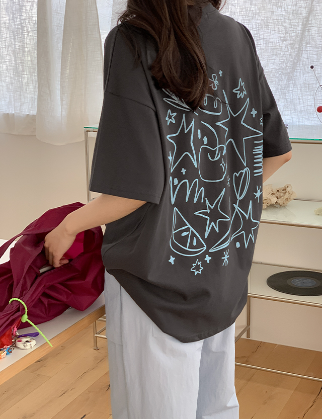 셀레스티 드로잉 Printing loose fit long Short-sleeve T-shirt 81739