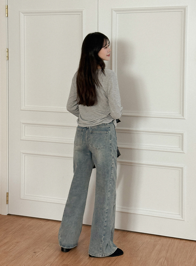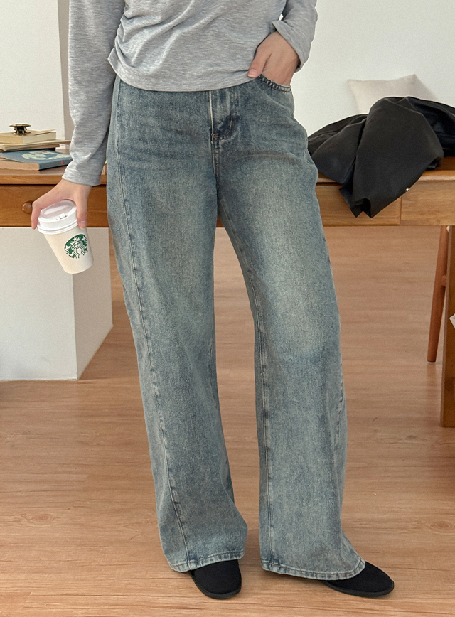 [두가지기장] 제노티 세미 Wide 절개 Denim Pants 84038