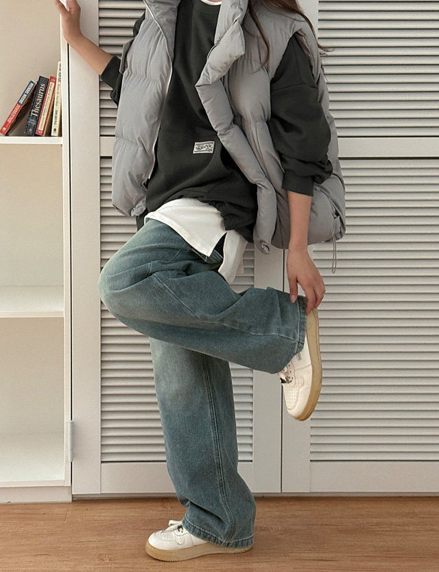 포디아 전체밴딩 Wide Denim Pants 84436