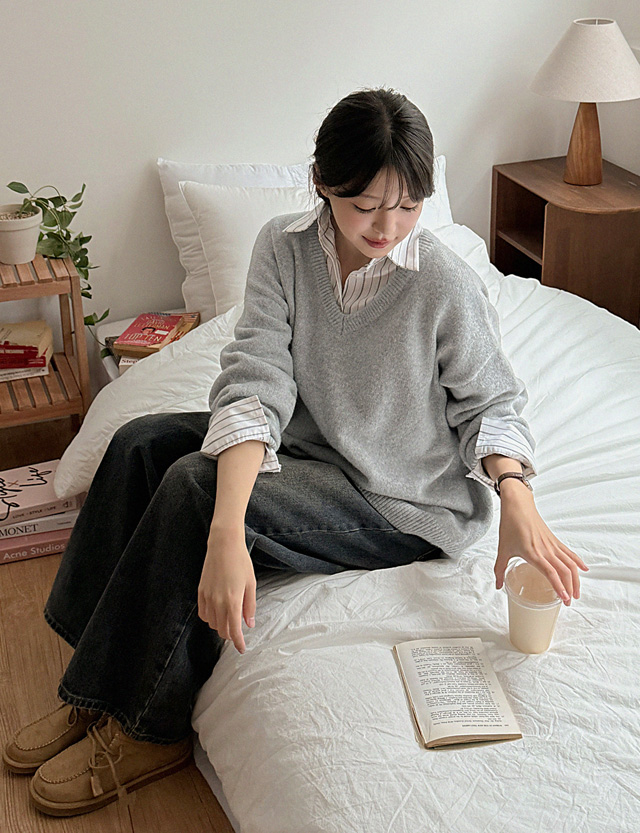 부들부들 보카시 loose fit V-neck Knit 84198