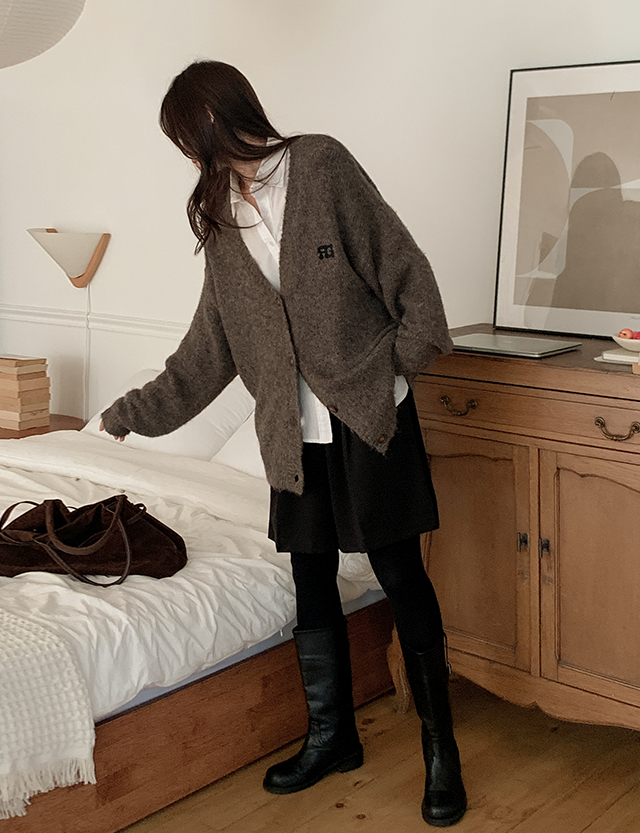 포토포토 V-neck 헤어리 loose fit cardigan 84414