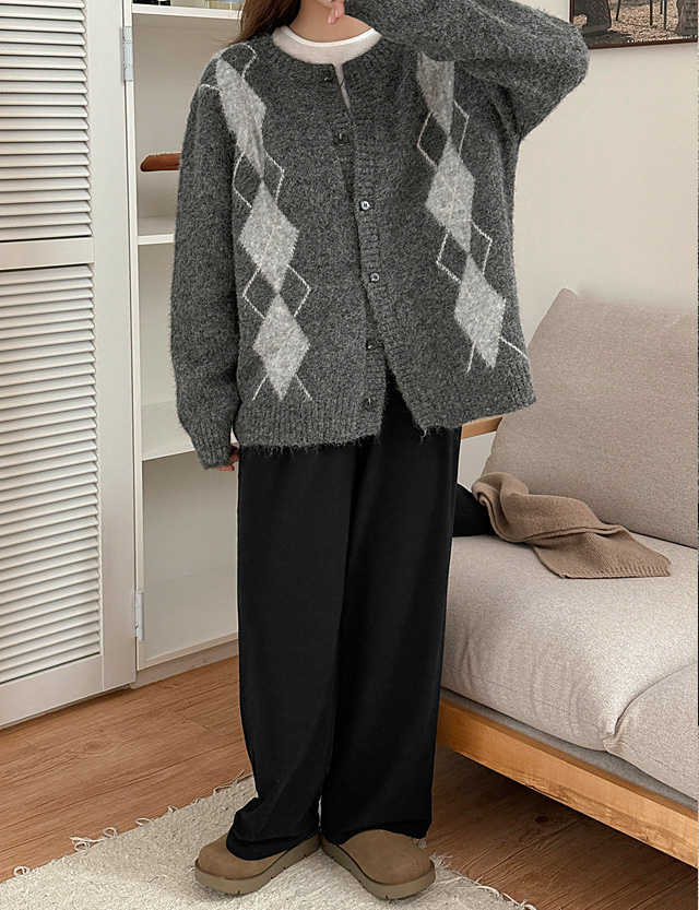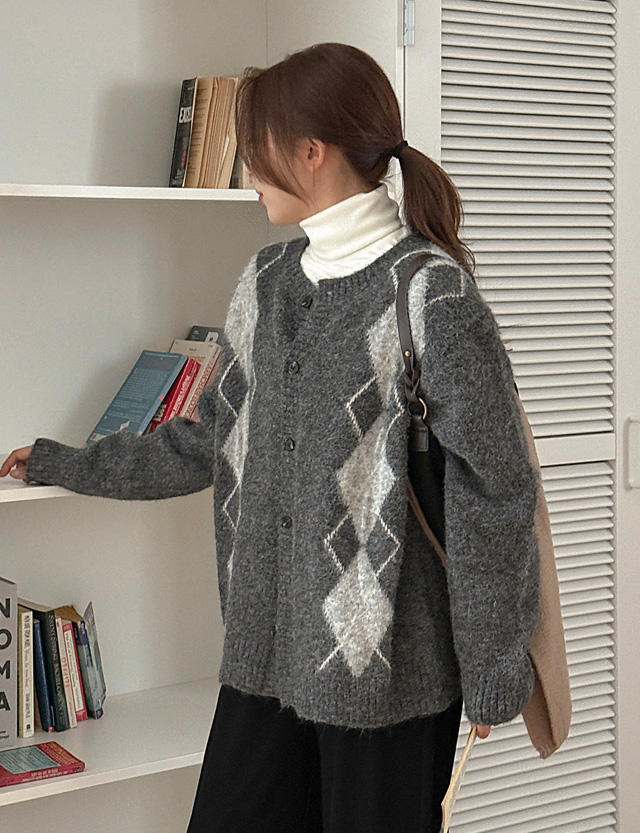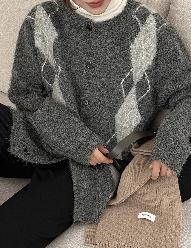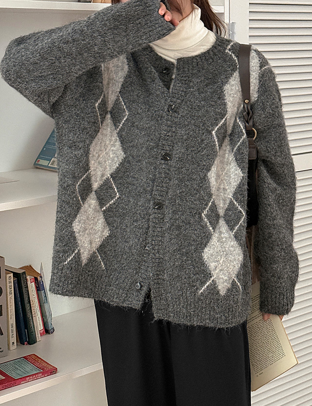 로브클 loose fit 모헤어 아가일 cardigan 84695