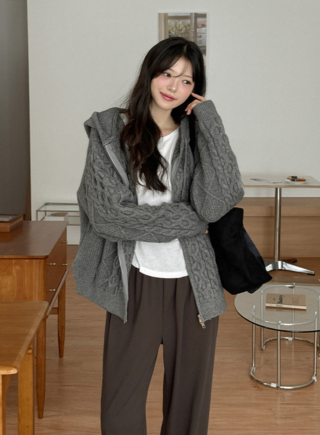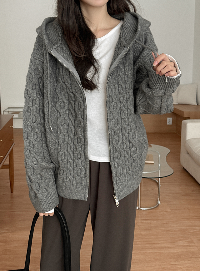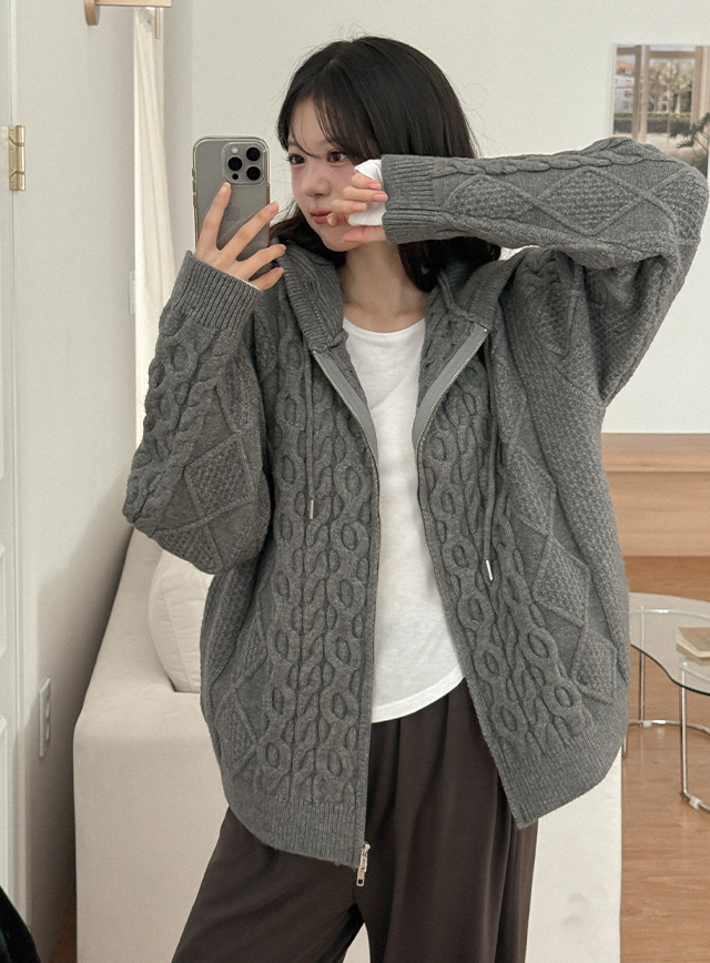 [남녀공용] 멜리드 loose fit Twiddle Knit Hood Zip up 84679