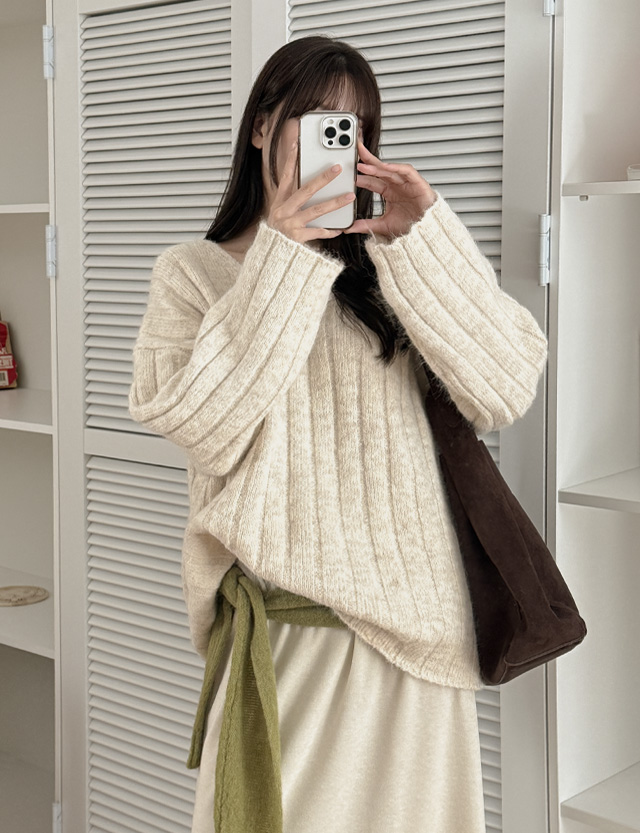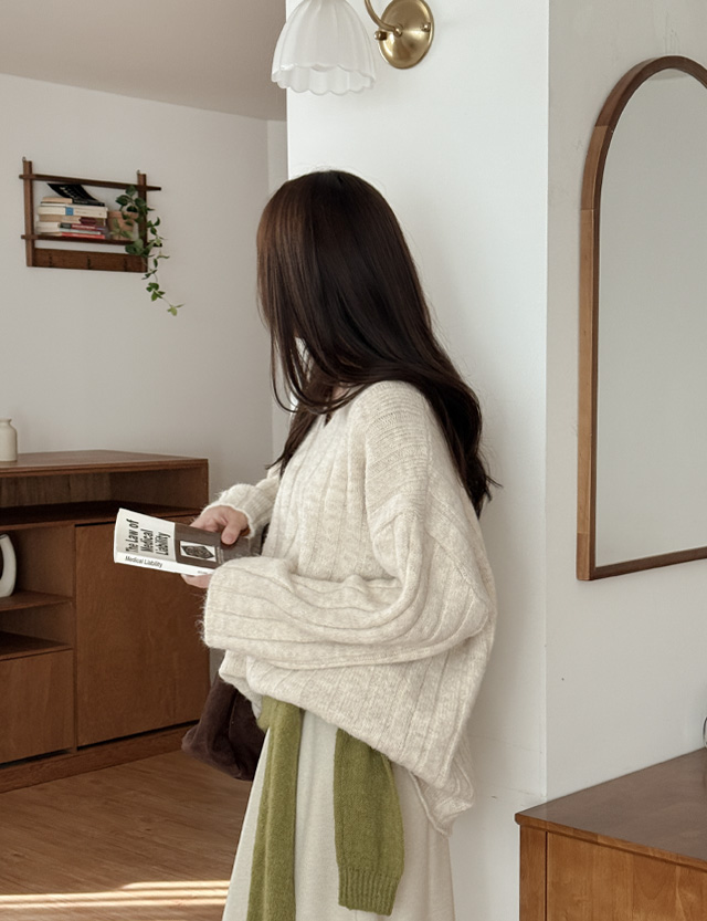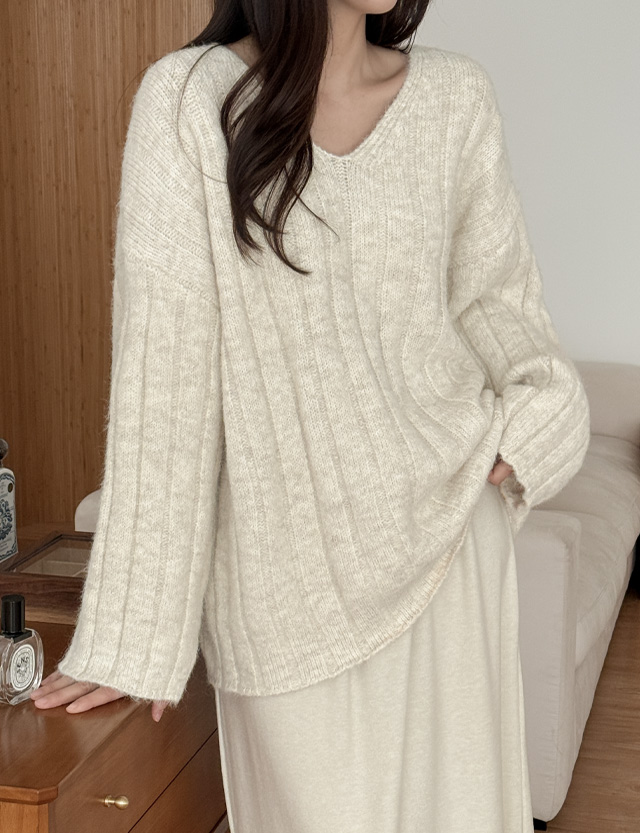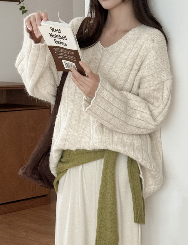 Essence loose fit corduroy V-neck Knit 84870