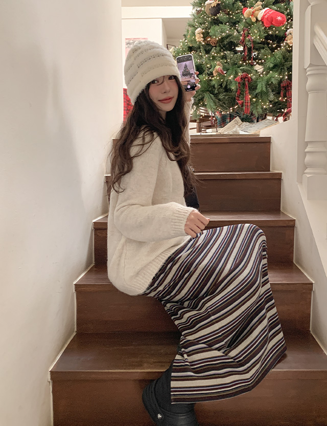 cappuccino Stripe Mink napping 맥시 Banding Skirt 85465