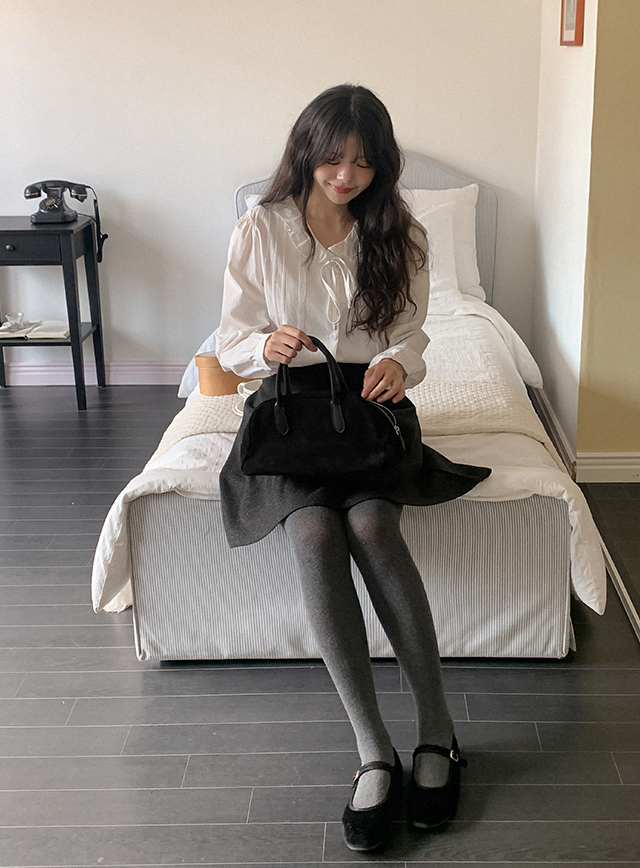 플레드 니트라이크 뒷밴딩 Mini Skirt 85547