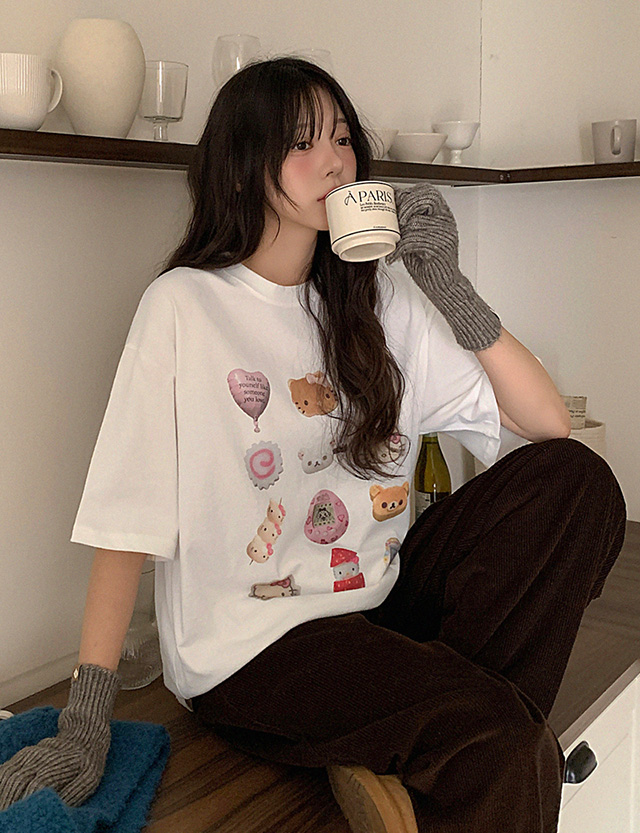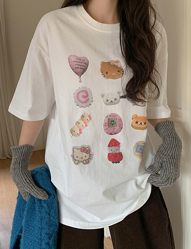 다마고치 겉기모 Raund neck Short-sleeve T-shirt 85748