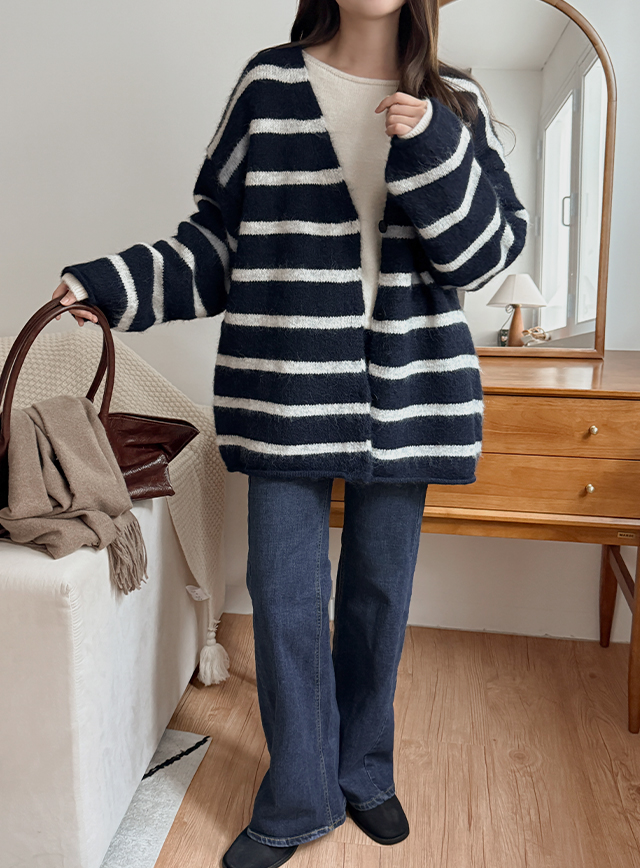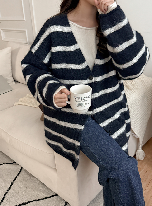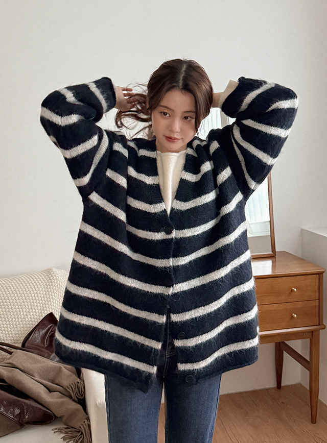 앤드릴 loose fit Stripe V-neck cardigan 85931