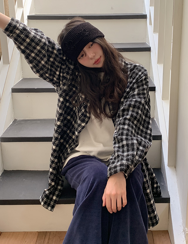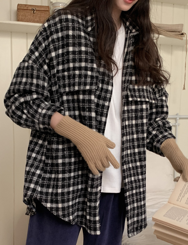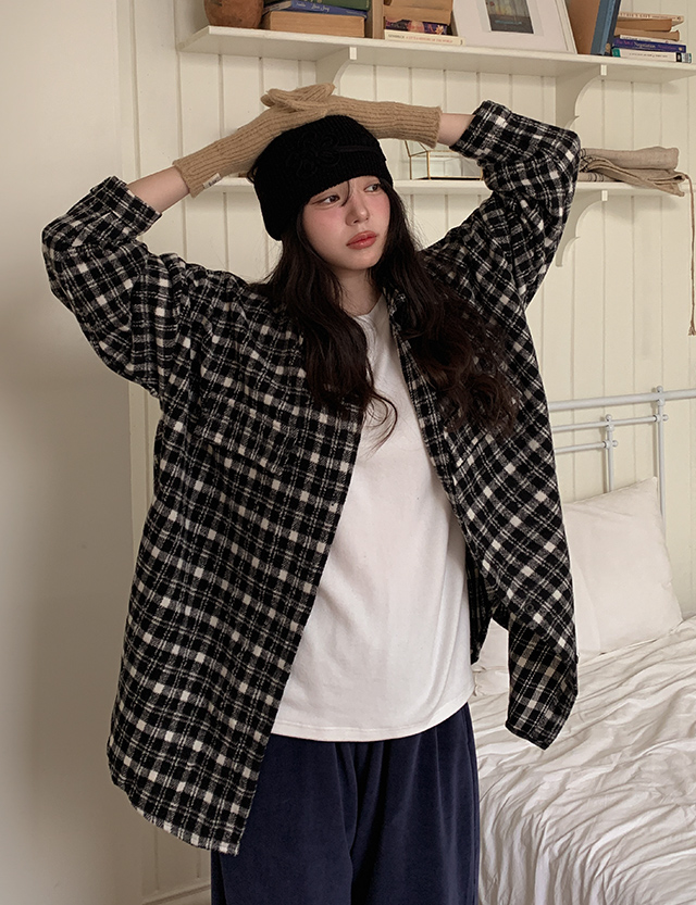 도아 겉기모 loose fit Check Shirt Jacket 85873