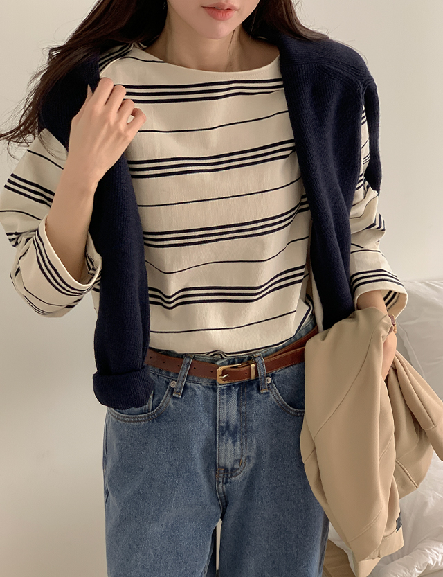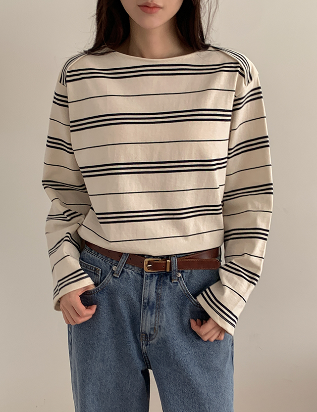 플러브 보트넥 Stripe Long-sleeve T-shirt 85956