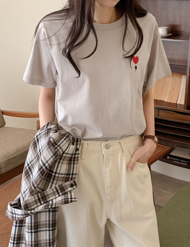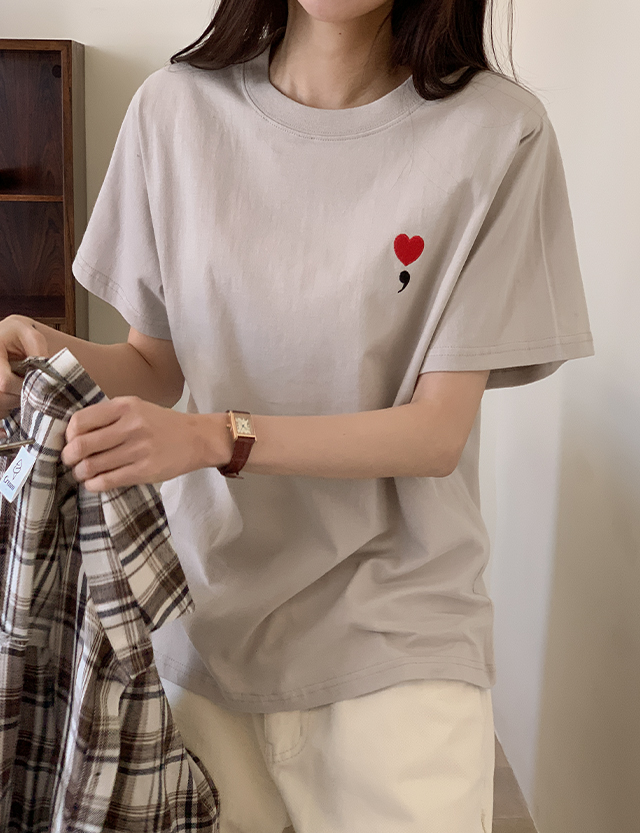 러블 heart Embroidery Short-sleeve T-shirt 85965