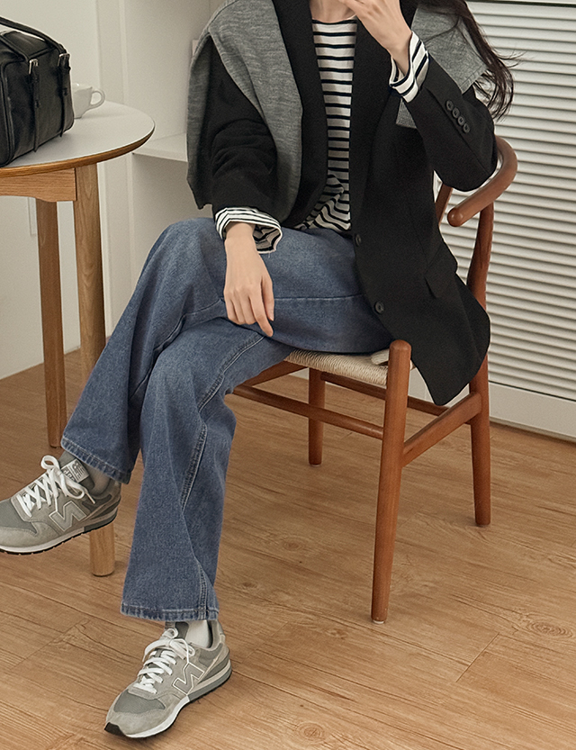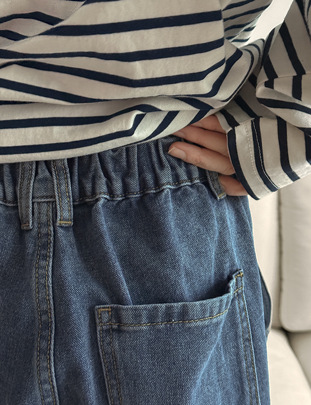 [5XL까지]버턴 Washing 뒷밴딩 Wide Denim Pants 86004
