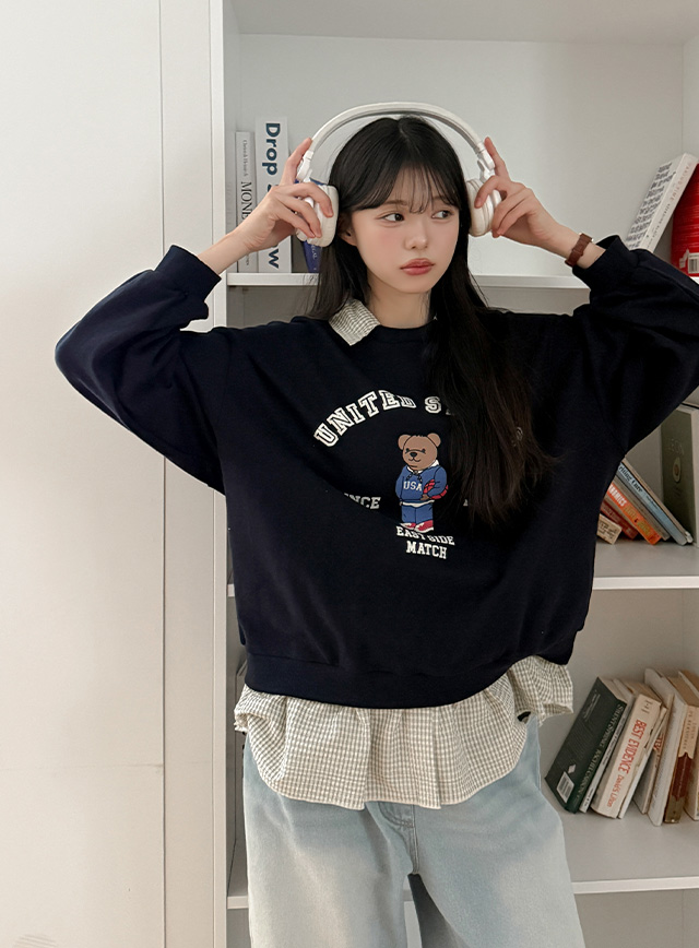 시로 체크셔츠 layered sweatshirt 86028