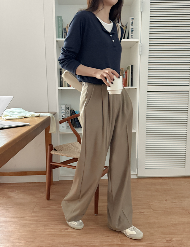 [엠디픽][2가지기장] 시어리 옆밴딩 Wide Slacks 86123