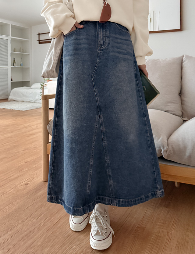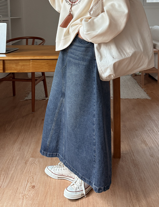 [2가지기장] 세이로 속밴딩 A line Denim Skirt 86257