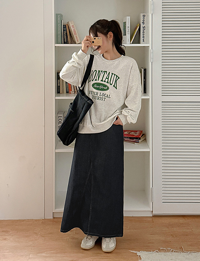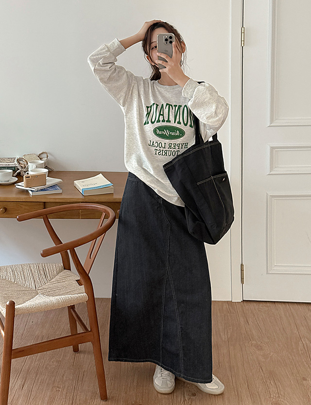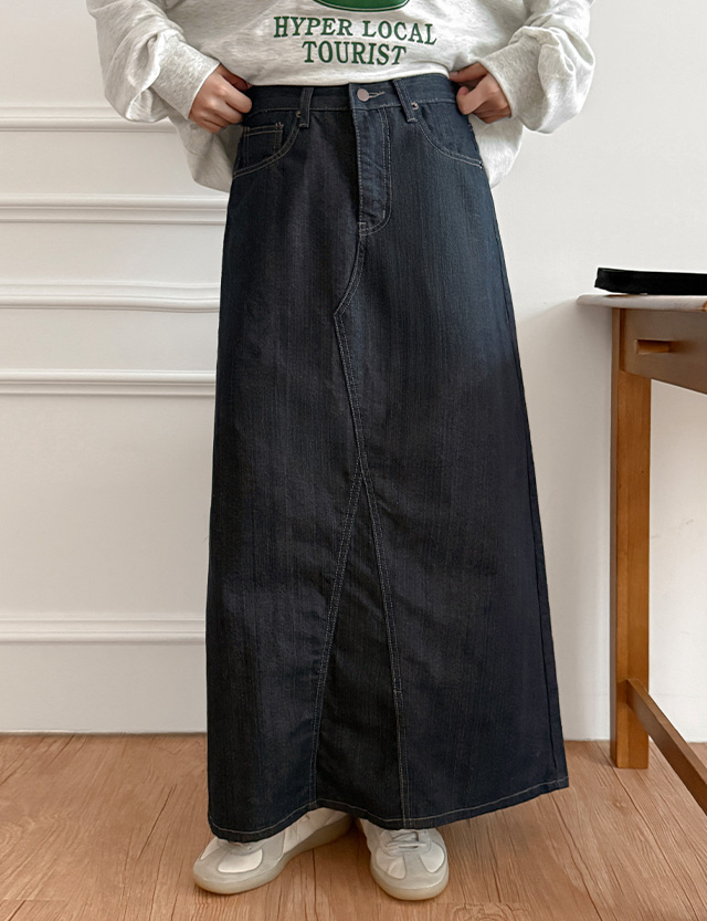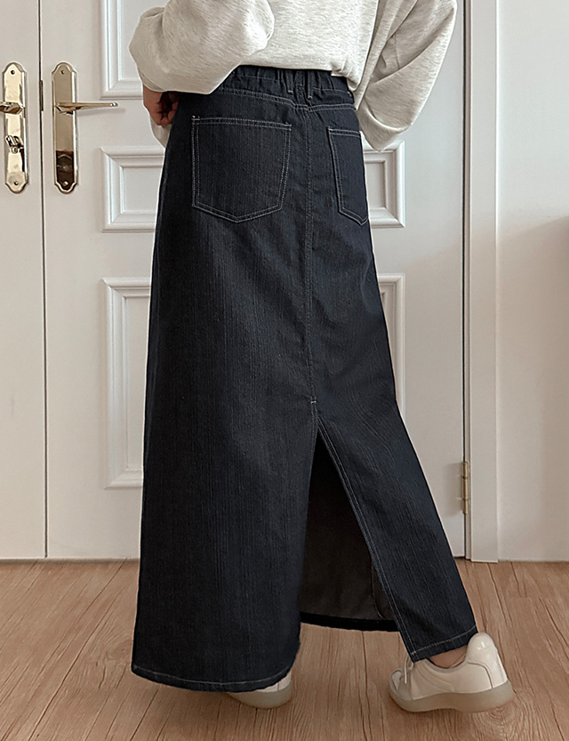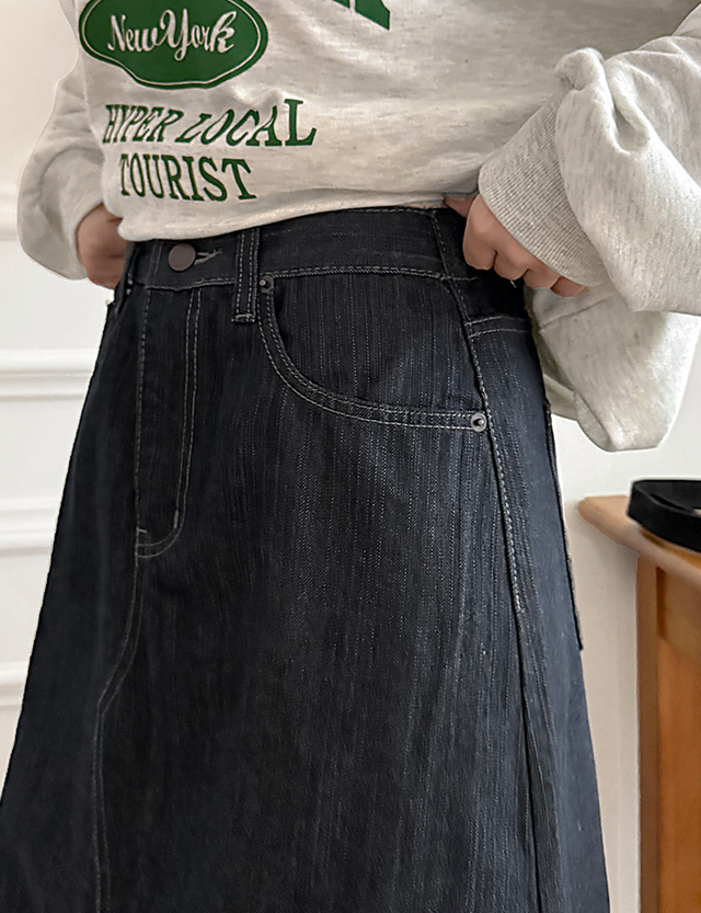 앗티 뒷밴딩 A line raw denim Denim long Skirt 86170
