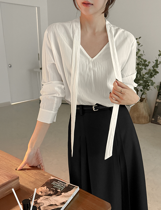 로이미 V-neck 타이 Blouse 86275
