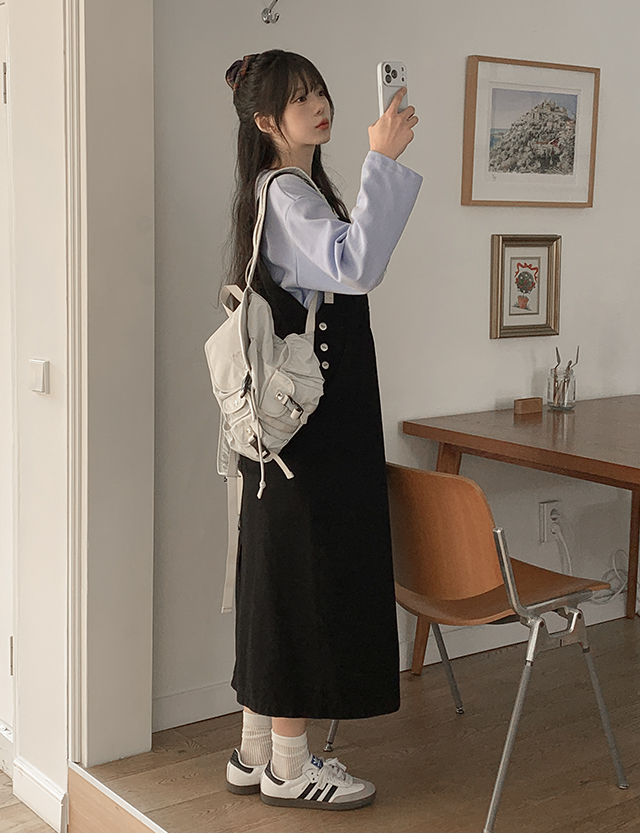 나슈이 Cotton Shoulder strap long One Piece 86358