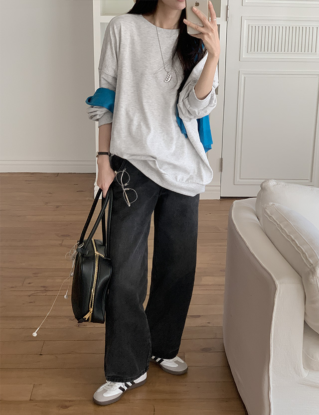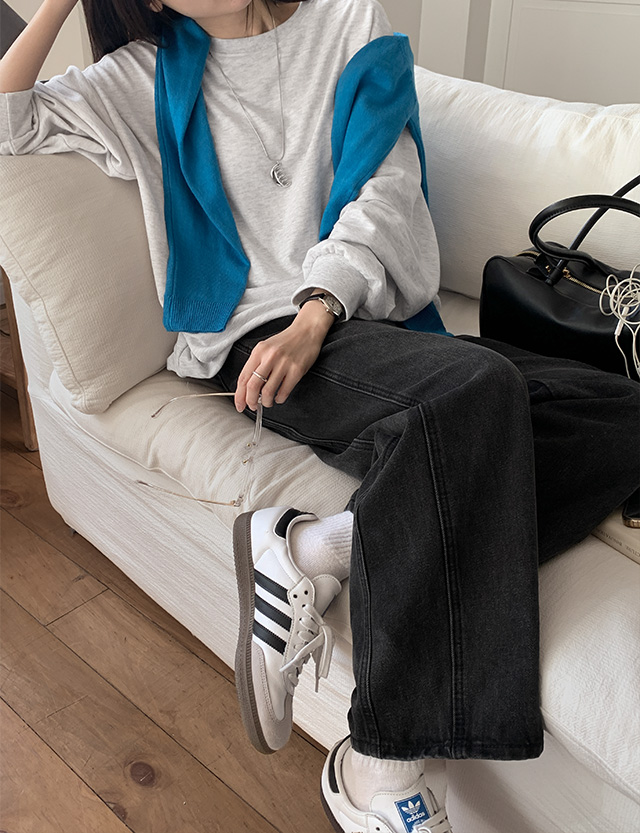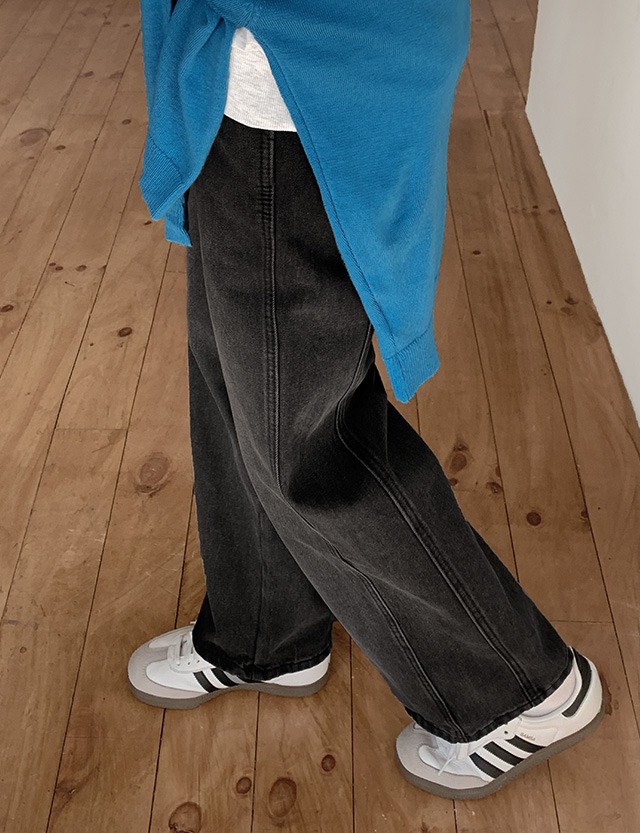 [3가지기장] 뮤티드 속밴딩 Side 절개 Wide Denim pants 86406