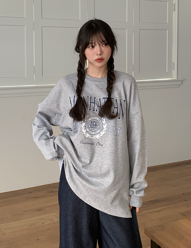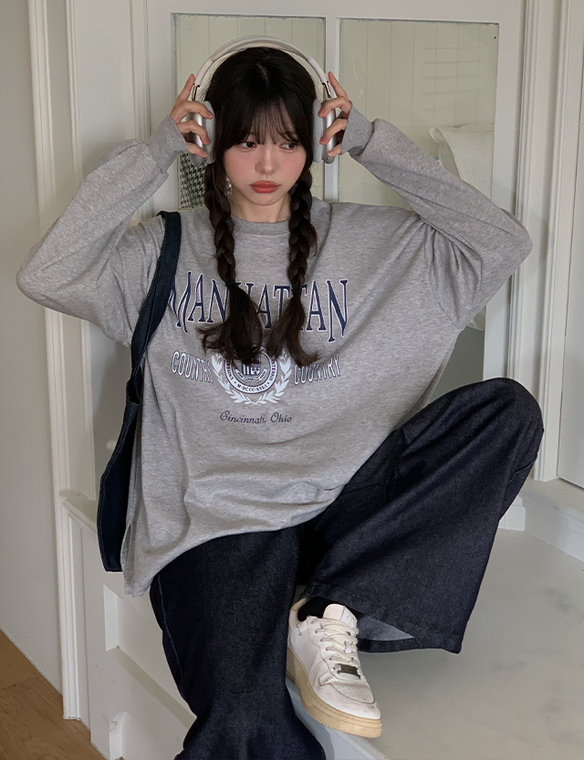 해튼 loose fit 레터링 Printing sweatshirt T-shirt 86194