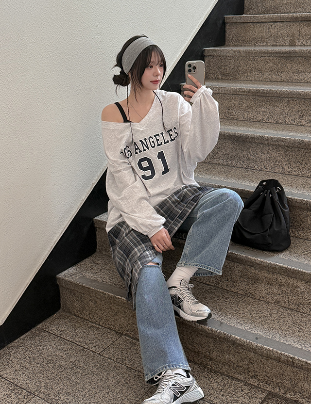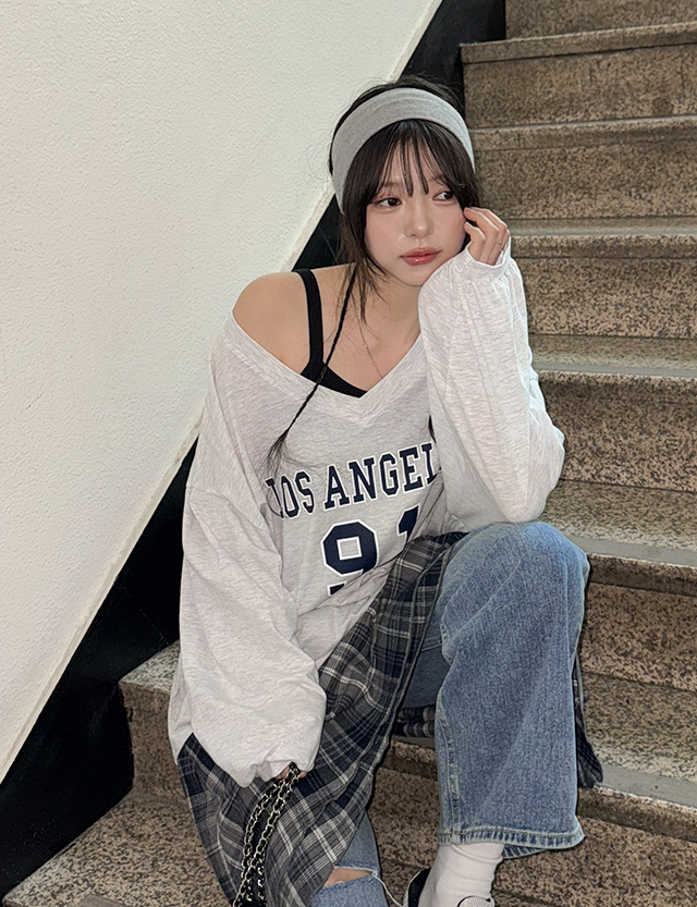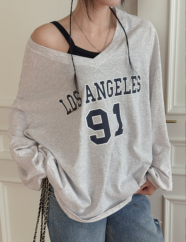 샐랜 레터링 V-neck Long-sleeve sweatshirt 86391
