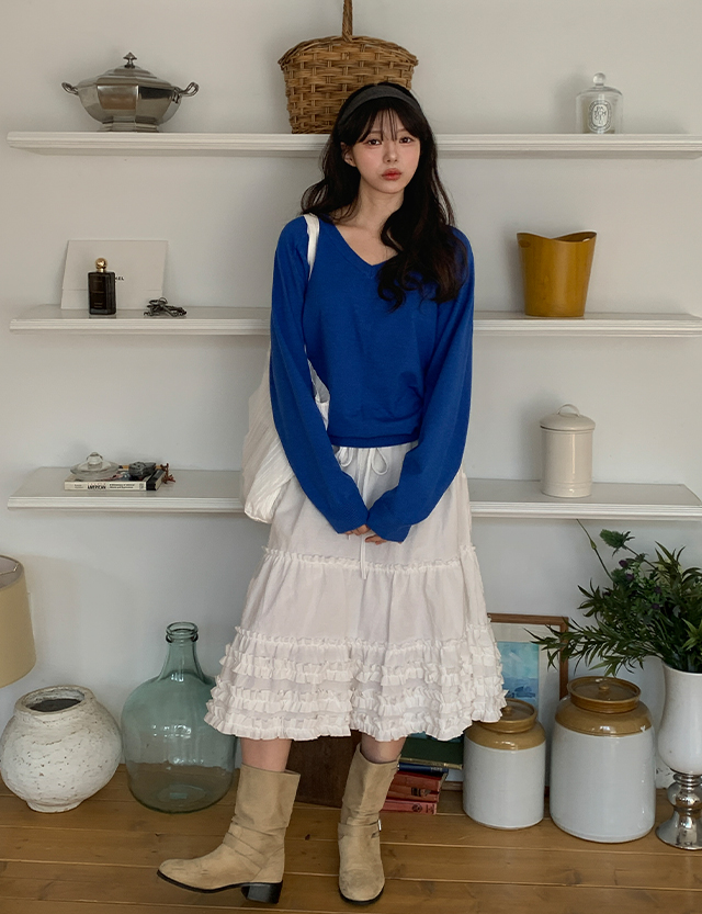 구루밍 string Tiered 미디 Skirt 86547
