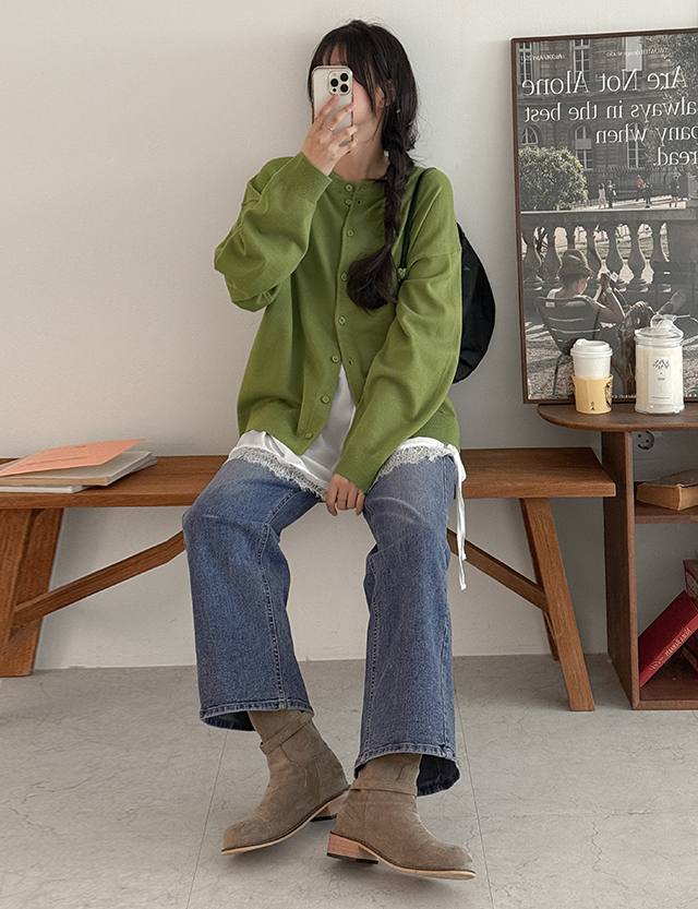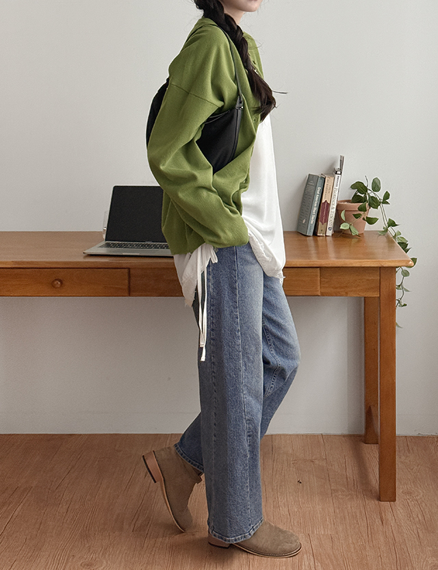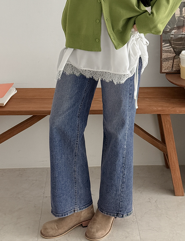 일레브 속밴딩 사선절개 Wide Straight Denim Pants 86377