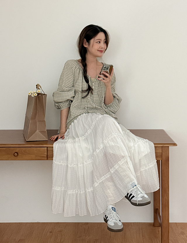 라슈카 Tiered Banding long Skirt 86563