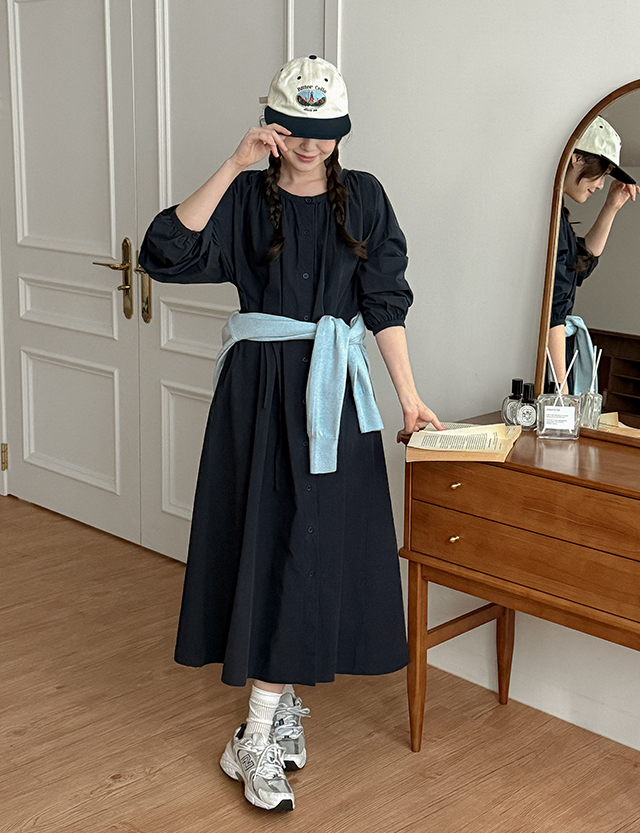 파넬리 loose fit 셔링 long One Piece 86484