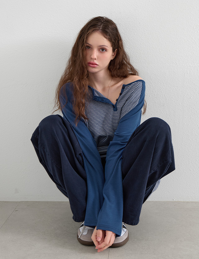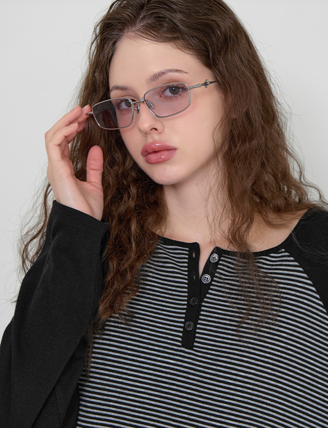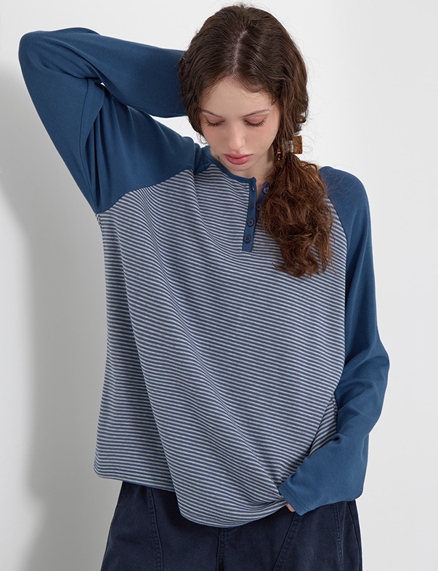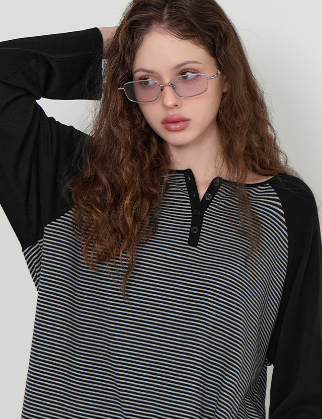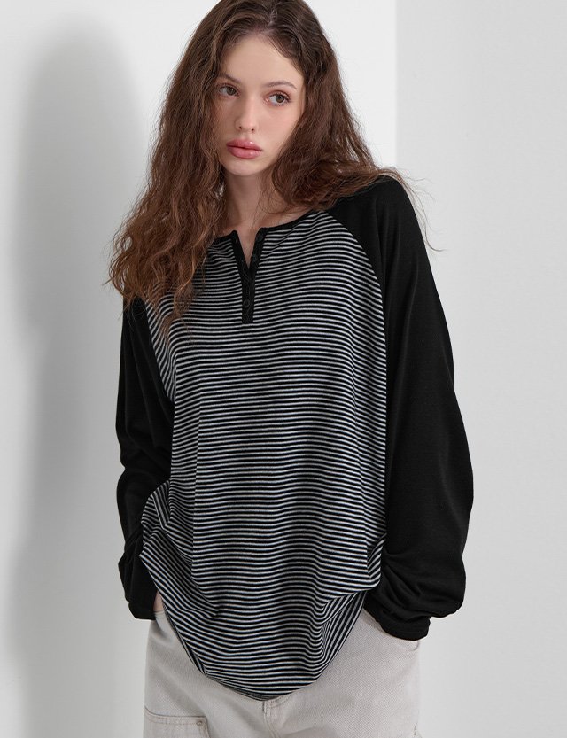 어도러블리 반오픈 Stripe Raglan loose fit T-shirt 86759