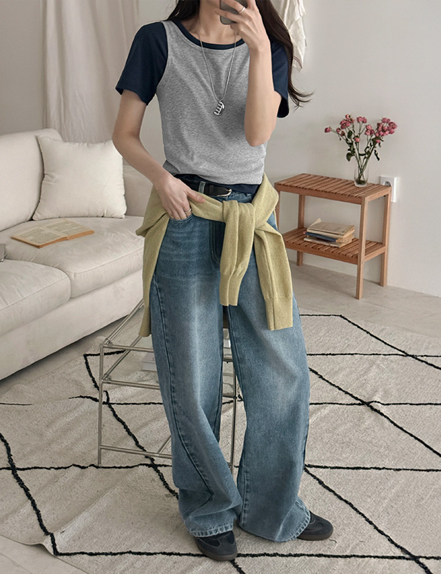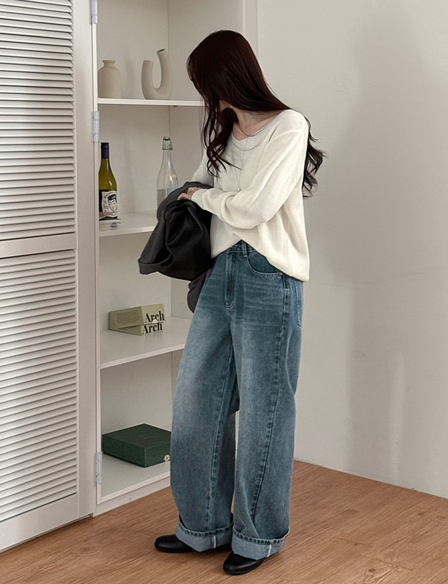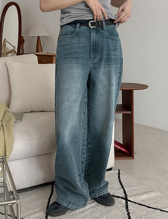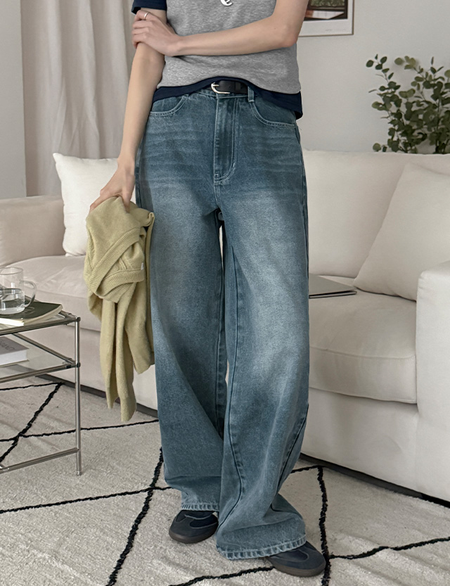 업다운 리얼 맥시기장 세미 Wide 뒷밴딩 Denim Pants 86878