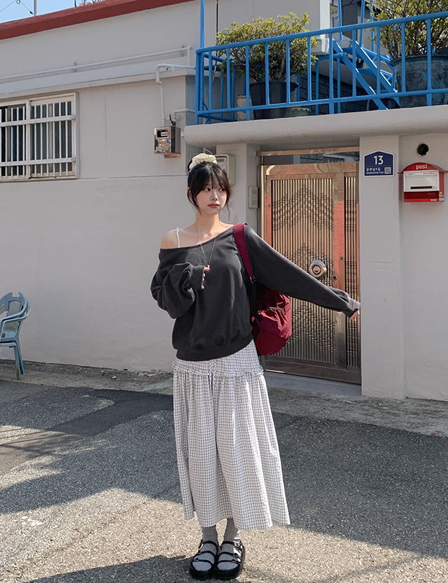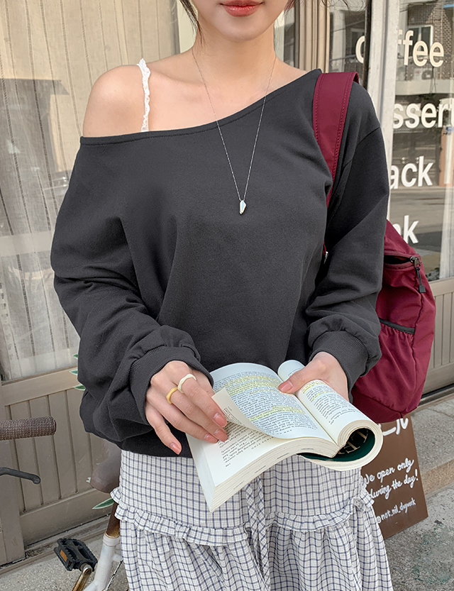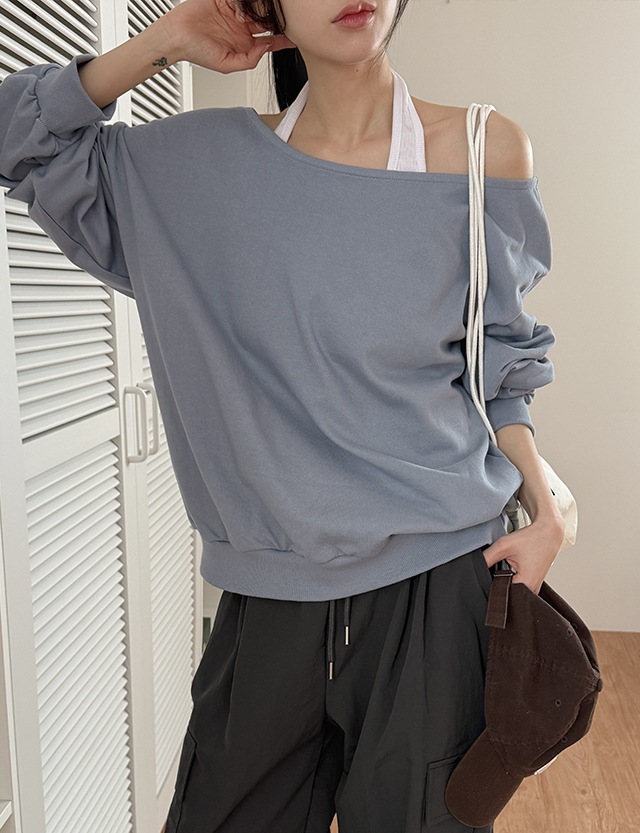 허쉴레 Off shoulder loose fit sweatshirt 86997