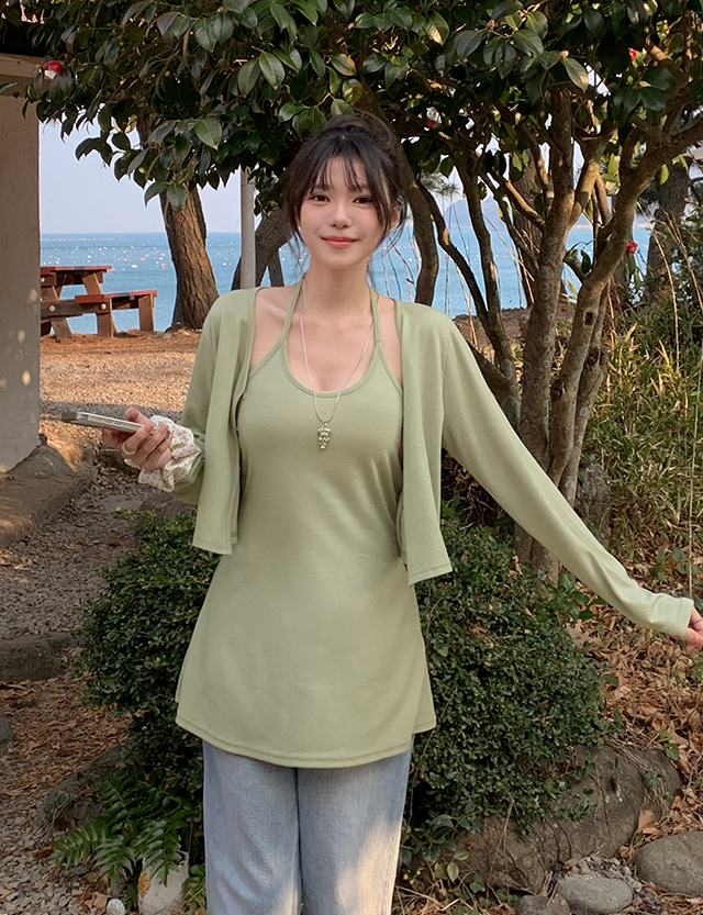 여리여리핏 Halter neck Flare Sleeveless shirts cardigan set 87029