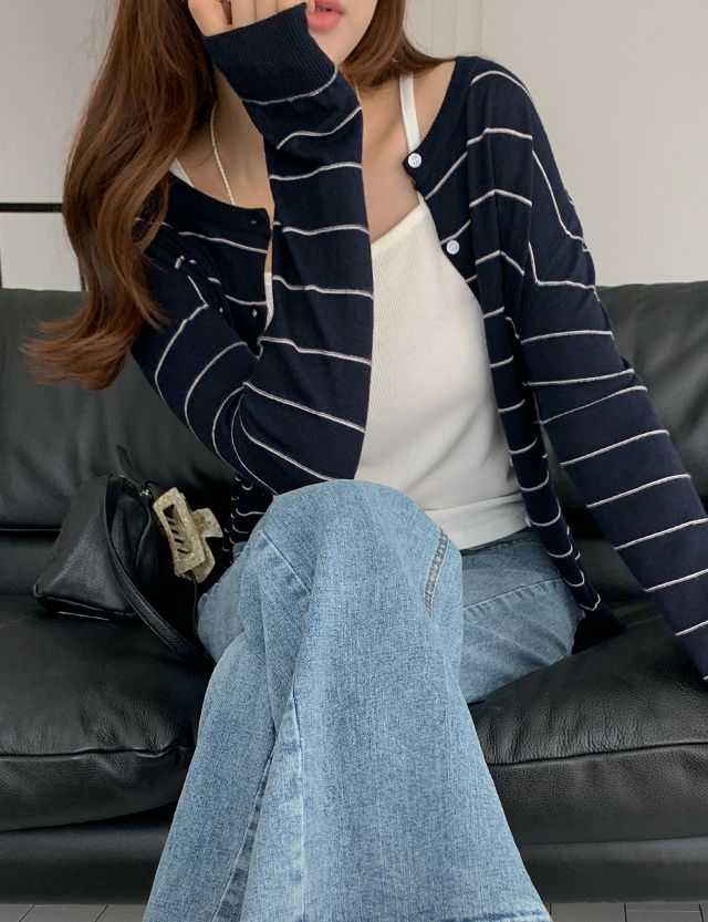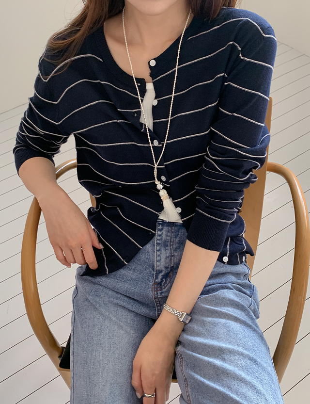 [09초이스] 옷장 속 Daily Stripe Raund neck cardigan 86714