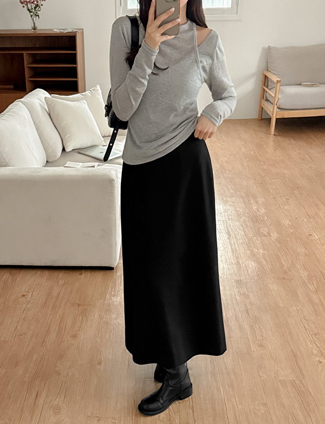 페어 뒷밴딩 A line 슬릿 long Skirt 86821